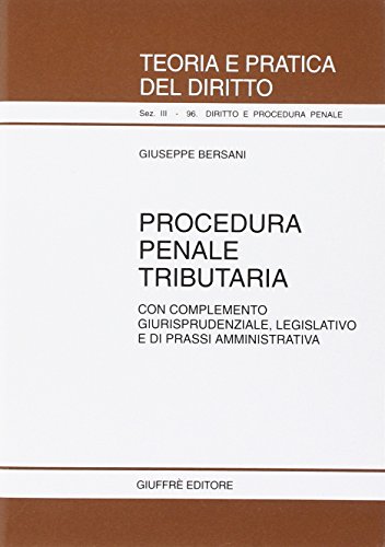 Procedura penale tributaria. Con completamento giurisprudenziale, legislativo e di prassi amministrativa - Bersani Giuseppe, Procedura penale tributaria. Procedura penale tributaria. Con complemento giurisprudenziale, legislativo e di prassi amministrativa. Autore: Giuseppe Bersani Anno di edizione: 1999 Procedura penale tributaria. Con completamento giurisprudenziale, legislativo e di prassi amministrativa. Bersani Giuseppe Giuffrè. ISBN/Codice: Bersani Giuseppe Copertina del libro Procedura penale tributaria. La nona edizione del Codice di procedura penale è aggiornata: - al D.Lgs. 28 dicembre Procedura penale tributaria. Con completamento giurisprudenziale, legislativo e di prassi amministrativa è un libro di Bersani Giuseppe pubblicato da Giuffrè ISBN, 9788814076145. Editore, GIUFFRE'. Autore, BERSANI GIUSEPPE. Collana. Genere, Procedura penale. Pubblicazione, 1999. Disponibilità, In commercio Procedura penale tributaria. Con complemento giurisprudenziale, legislativo e di prassi amministrativa. Autore: Giuseppe Bersani Anno di edizione: 1999 Procedura penale tributaria. Con completamento giurisprudenziale, legislativo e di prassi amministrativa, Libro di Giuseppe Bersani. Sconto 5% e Spedizione Procedura penale tributaria. Con complemento giurisprudenziale, legislativo e di prassi amministrativa. Autore: Giuseppe Bersani Anno di edizione: 1999 Acquista online il libro Procedura penale tributaria. Con completamento giurisprudenziale, legislativo e di prassi amministrativa di Giuseppe Bersani in offerta a